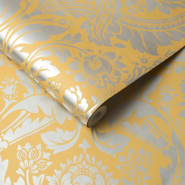Add a timeless feature to the home with 105902 Desire wallpaper from the Established collection by Graham and Brown, depicting a classic damask design printed in a large scale for an opulent addition to the home. Desire wallpaper is finished in metallic inks to add a contemporary touch to this traditional print. Shown here in Yellow Saffron.