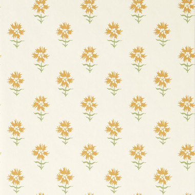 113161 Fellcroft wallpaper is an archival design from the Harlequin x Henry Holland collection, offers a delicate small-scale floral pattern that complements the collection's bolder designs. Celebrating organic shapes, the wallpaper is printed to mimic the traditional woodblock technique. Its dry, chalky texture creates an intentionally imperfect finish, reminiscent of fabric. Shown here in Honeycombe