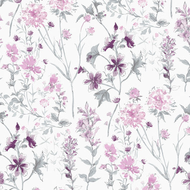 113362 Wild Meadow wallpaper from the Volume One collection by Laura Ashley is certain to offer a refreshing, tranquil feel to the interior. Featuring a charming compilation of florals seen in wild meadows, presented in a hand painted style to offer an authentic feel to the design. Shown here in Wild Iris.