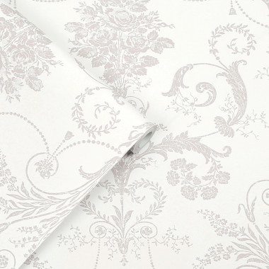 113385 Josette Dove Grey / White Wallpaper by Laura Ashley