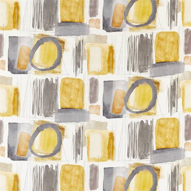 120808 Kanjiro Atelier Ochre Charcoal Stone Fabric by Harlequin