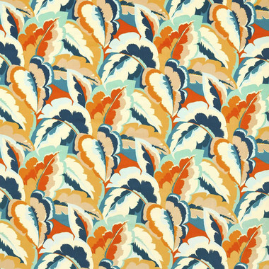121138 Calathea Velvet Colour 3 Azul, Onsen, French Ochre and Paprika Fabric by Harlequin