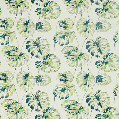 Kelapa Fabric 132647 by Harlequin features large scale cheese plant leaves and stems, hanging effortlessly throughout this all over jacquard weave design. Produced in a watercolour style, a wallpaper of the same name is available.