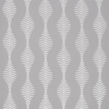 Harlequin Paloma Lucielle 132661 fabric features an organic leaf-inspired embroidery design that creates a modern geometric curve in repeat. The metallic detailing in the outline gives a hint of sparkle and its beautiful finish adds a subtle sheen. Suitable for drapes and accessories only.