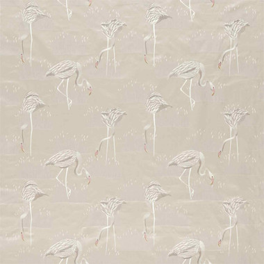 Harlequin Salinas Prints And Weaves Salinas 132954 fabric portrays fabulous flamingos with exquisitely embroidered wings. Jacquard bulrushes stand tall across all colourways and add a subtle shine.