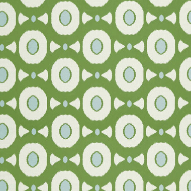 Harlequin Colour 2 Zinnia 133888 Fabric. Sharing a global traveller feel and ikat edged motif, Zinnias woven satin ground contrasts with its textural circular design and colourful highlight centre. Pair with our Ixora fabric for heady dose of complementary pattern.