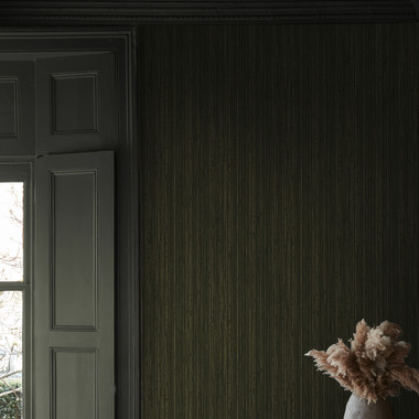 140101 Fibre Stripe Forest by Abigail Ahern Fibre Stripe Forest is a captivating wallpaper with an intricate, textured stripe design in a deep forest green, with accents of light green throughout on a soft shimmer ground. The deep, earthy tones create a calm and serene atmosphere, while the subtle interplay of fibers in the stripes adds depth and a tactile quality to the surface. This wallpaper exudes modern elegance, effortlessly enhancing any space with a sophisticated yet soothing aesthetic. Ideal for living rooms, bedrooms, or offices.