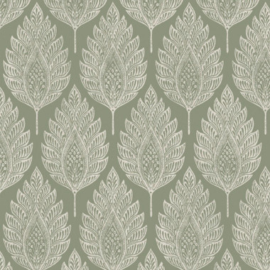 Bold in form, gentle in tone. Flame Leaf Sage brings together structure and softness in perfect balance. A rich sage background anchors the design, while intricate leaf silhouettes in soft neutral tones rise like pressed prints evocative of ancient woodcuts or artisan blockwork. Each flame-shaped form is finely detailed, adding layers of visual interest without overwhelming the eye. The repeating pattern creates a quiet rhythm ornamental but never fussy. This is a design that feels grounded in nature yet styled for modern spaces, adding depth and texture to walls while keeping the palette calm and earthy. Flame Leaf Sage works beautifully in both bright and low-lit rooms, offering a cocooning effect that's timeless, tactile, and quietly expressive.