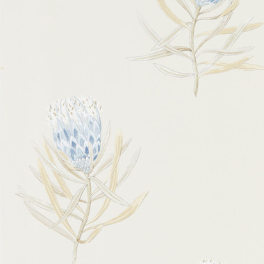 216327 Protea Flower Curios China Blue/Canvas Wallpaper by Sanderson