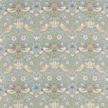 Strawberry Thief Fabric 220314 (226464) by William Morris & Co in Slate/Vellum features the iconic strawberry thief design, depicting birds taking the fruits from intertwining vines. The design Strawberry thief takes inspiration from real life problems, gardeners struggle with birds eating their fruits, Morris himself tried to grow strawberries at Kelmscott Manor and experienced the same problem! Morris Strawberry Thief is an easily recognisable design, and the fabric is perfect for completing the finishing touches within the interior.
