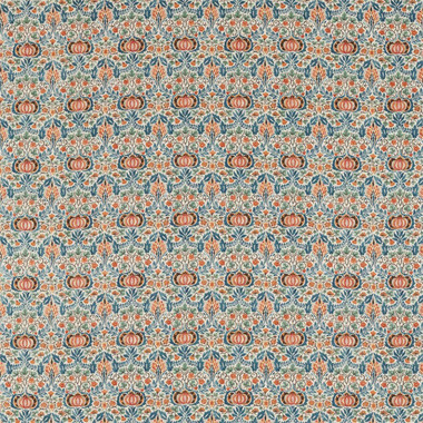 Little Chintz Fabric 226409 by William Morris & Co features pomegranates and Indian inspired motifs in a small-scale damask style. Available in an eclectic colour palette, Little Chintz is ideal for incorporating Morris designs into small spaces. Suitable for upholstery and curtains and printed on a linen-mix cloth.