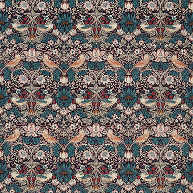 Strawberry Thief Velvet 236931 Fabric by Morris & Co features the iconic strawberry thief design, depicting birds taking the fruits from intertwining vines. The design Strawberry thief takes inspiration from real life problems, gardeners struggle with birds eating their fruits, Morris himself tried to grow strawberries at Kelmscott Manor and experienced the same problem! Morris Strawberry Thief is an easily recognisable design, and the fabric is perfect for completing the finishing touches within the interior.