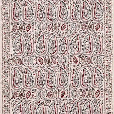 Jayshree Fabric by Zoffany 331627 is a traditional paisley design, which has been delicately embroidered on a linen-blend fabric. Jayshree features a decorative border running along the edges. This is the typical style of the original Kashmiri design. Presented in the typical colours of the inspired region, Jayshree is certain to add heritage and style to any interior. The design is densely layered for a vibrant, captivating print.