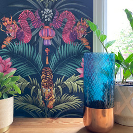 A fantastical design inspired by myths and legends, 3912 Wilson Oriental Tiger Wallpaper by Belgravia is a nature inspired design featuring tigers and oriental dragons perfect for dreamers and maximalists and certain to be a striking addition to the home interior. Belgravia Wilson wallpaper is printed on a flat paper and is shown here set against a Cream background.