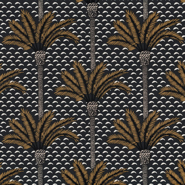 Taking inspiration from the desert, 75240814 Atlas wallpaper from the Mirage collection by Casamance depicts stylised palm trees, closely repeated to create a contemporary pattern for the home. Printed against small lines reminiscent of the breaks in sand in the desert, Atlas wallpaper has a modern tropical feel, certain to add an updated feel to the interior. Featuring fanned palm leaves with a hand painted feel, shown here in Carbone.