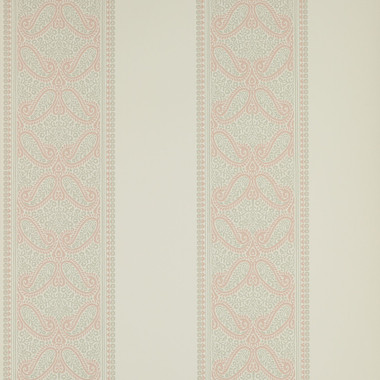 07186/03 Verney Mallory Stripes Wallpaper By Colefax and Fowler features a captivating decorative print of paisley motifs and florals held within borders to create a stunning wide width stripe, shown here in Pink.