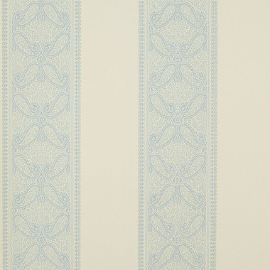 07186/05 Verney Mallory Stripes Wallpaper By Colefax and Fowler features a captivating decorative print of paisley motifs and florals held within borders to create a stunning wide width stripe, shown here in Blue.