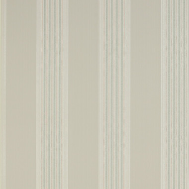 07991/07 Tealby Mallory Stripes Wallpaper By Colefax and Fowler features a versatile mid-scale stripe design with ticking stripes within to add character, shown here in Stone and Aqua.