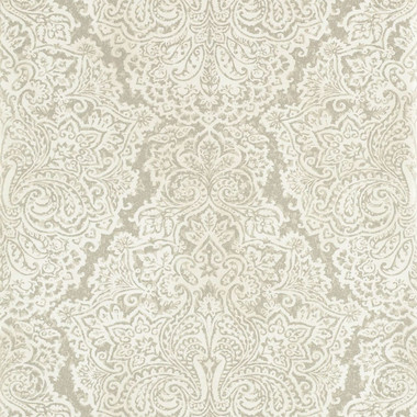 Harlequin Leonida 110640 Aurelia wallpaper decorated with stunning damasks, in a very detailed presentation in White Gold Tint. Perfect for achieving a centurian style.