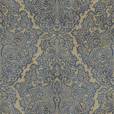 Harlequin Leonida 110642 Aurelia wallpaper decorated with stunning damasks, in a very detailed presentation in Sapphire Gold Tint. Perfect for achieving a centurian style.
