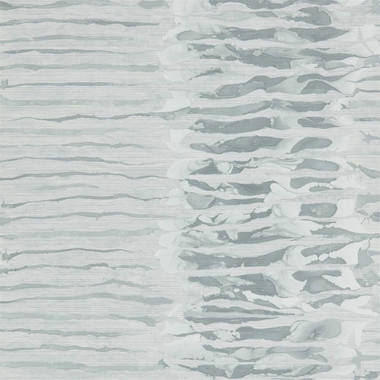 112577 Ripple Stripe Anthology 07 Wallpaper By Anthology takes inspiration from the watery depths of marbling and the interplay of light and water. Ripple Stripe features a subtle emboss enhanced with non-metallic inks to add depth and interest to the design and is shown here in Steel.