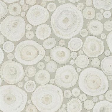 216509 Alnwick Logs Embleton Bay Wallpaper By Sanderson features hand-drawn log ends arranged in an captivating abstract pattern, shown here in Ash.