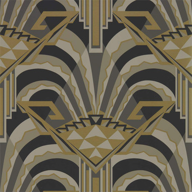 Taken from a 1930s archive document, 312744 Conway The Muse Wallpaper by Zoffany features a glorious geometric Art Deco style design. The Muse Conway wallpaper takes its name from Gordon Conway, a fashion artist and Vanity Fair illustrator and has been rotary printed with a mix of matt and metallic inks highlighting the decadence of the Art Deco era, shown here in Antique Bronze.