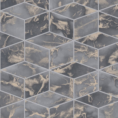 Create a contemporary feature within the home with 37863-3 wallpaper from the Metropolitan Stories 2 collection by AS Creation. Featuring a modern geometric hexagon print layered with marble and glitter detailing, 37863-3 wallpaper is certain to make a statement in any room of the home. shown here in Gold and Grey.