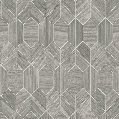 42032 Hive Ligna Wallpaper by Arte features a geometrical honeycomb that consists of inserts with a wood structure on a ground of shiny film. The film appears in fine lines between the inserts, giving a hexagonal shape.