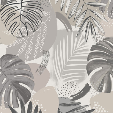 BMTD001/01B Abstract Jungle wallpaper from the Tropical Daze collection by Brand Mckenzie is a delightful botanical print featuring a compilation of hand painted leaves in a silhouette style. Printed in a tranquil colour palette, Abstract Jungle is the perfect wallpaper for adding an on trend feel to the home with a calming style. Shown here in Putty Grey.