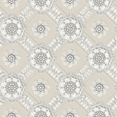 Classic Silks 3 is an iconic collection of traditional designs to create a heritage-inspired interior. This range offers a timeless collection of classic prints to create a regency inspired scheme. Introduce the look with this cream and beige floral motif wallpaper with silver metallic highlights for added impact.