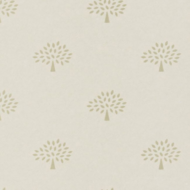 FG088K102 Grand Mulberry Stone Modern Country Wallpaper By Mulberry Hom. An elegant wallpaper design featuring the founder's iconic 'Mulberry Tree' motif, printed on a paint effect backdrop, shown here in Stone.