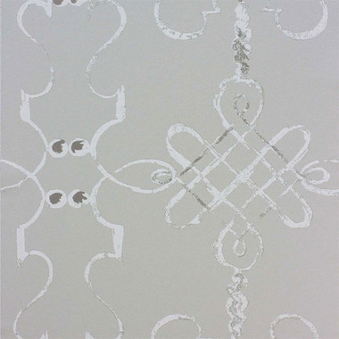 NCW4308-02 Portavo Les Rêves Wallpaper By Nina Campbell revisits a classic design featuring a loosely drawn stylised knot motif with a distressed hand-painted effect, shown here in Grey and Ivory.