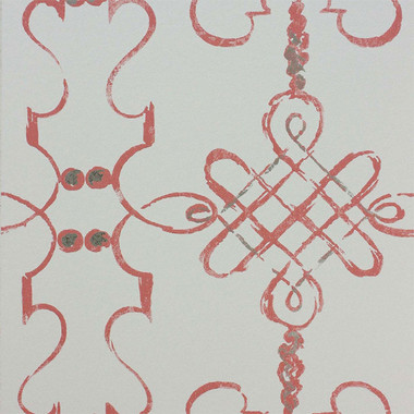 NCW4308-04 Portavo Les Rêves Wallpaper By Nina Campbell revisits a classic design featuring a loosely drawn stylised knot motif with a distressed hand-painted effect, shown here in Coral and Ivory.