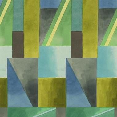 PDG1109/01 Alphonse wall mural from the Scenes and Murals collection by Designers Guild features a painterly geometric design, shown here in Azure.