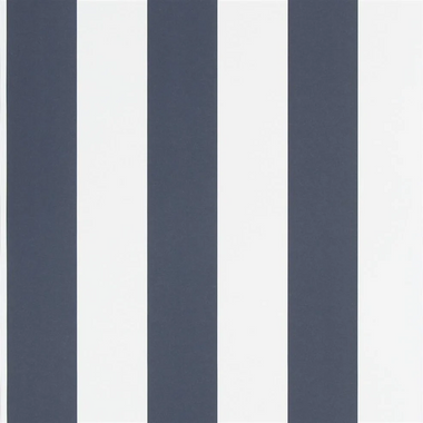 PRL026/08 Spalding Stripe Signature Stripe Wallpaper by Ralph Lauren features a classic wide stripe wallpaper design, shown here in Navy and White.