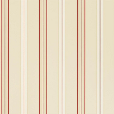 PRL054/06 Dunston Stripe Signature Papers II Wallpaper by Ralph Lauren features stripes of alternating colours set against a plain background, shown here in Vermillion.
