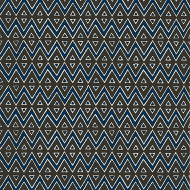 T13236 Tiburon wallpaper from Thibaut's Mesa collection features a perfectly scaled linear design that creates a hand-crafted geometric illusion. Inspired by an ancient batik textile, the pattern showcases dual-facing triangles set within diamonds, offering a timeless, artistic blend of tradition and modernity. Shown here in Brown and Blue.