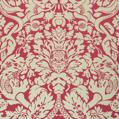 W0088/07 Valentina Colony Wallpaper By Clarke & Clarke features a beautifully detailed, classic damask design that will add a romantic feel to your home interior, shown here in Raspberry.