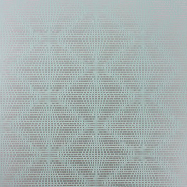 W6897-04 Ruhlmann Fantasque Wallpaper by Osborne & Little features a stunning Art Deco inspsired diamond trellis made up of small metallic rectangles, shown here in Aqua & Silver.
