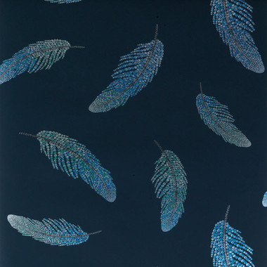 W7261-01 Adornado Deya Wallpaper By Matthew Williamson is a striking feather print, finished in holographic, shimmering metallic on a contrasting background. Adornado's feathers appear to float effortlessly across the wall when hung.