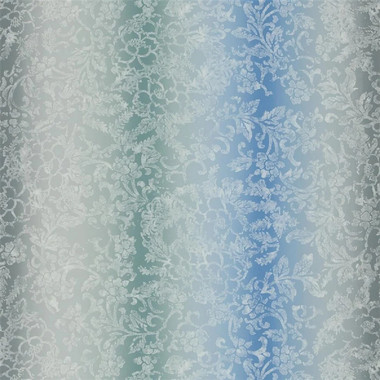 Yuzen - intricate lacework design across a shaded stripe wallpaper, shown here in Cornflower.