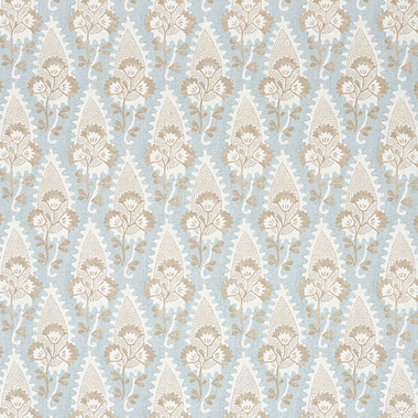 Anna French Antilles Cornwall AF15123 Spa Blue fabric is a pure linen fabric. Featuring a fusion between stylized florals and paisleys arranged in arrays.