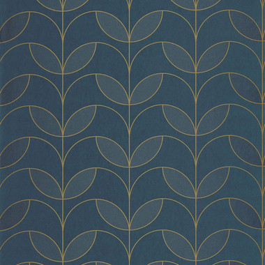 Mistinguett Annees Folles in Bleu Pétrole offers a striking design with bold, golden tiara-inspired accents against a rich blue petrol background. This wallpaper adds both depth and vibrancy to your space, capturing the essence of the roaring twenties. The contrast of deep blue and metallic highlights evokes the dazzling energy of the cabaret, perfect for those seeking a statement wall with vintage flair.