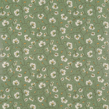 Chelsea, from the Bristol wallpaper collection by Anna French, features a charming allover print of small-scale florals and vines set against a dotted backdrop. Inspired by a traditional West African resist print, the design retains its subtle tonal variations through advanced digital and gravure printing techniques. The Bristol Chelsea wallpaper can lend a masculine touch to a study or a more delicate, refined feel to a bedroom, shown here in Emerald.