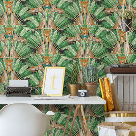 Fanned botanical leaves giving the impression of the fans used by flapper girls in the 1920's are the backdrop for Leopard Heart wallpaper from the Heart Deco collection by Brand Mckenzie. Amongst the captivating foliage are playful leopards posing frivolously wearing top hats, eyewear, bow ties and diamond tiaras. BMHD002/05B Leopard Heart Deco is reminiscent of the swinging times of the 1920's and 1930's and is certain to add a fun feature within the interior. Shown here in Light.