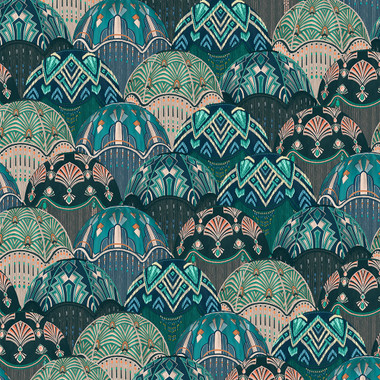 Do you see hot air balloons gathered close or glamorous lamp shades? Silk Shades wallpaper from the Heart Deco collection by Brand Mckenzie is a delightful Art Deco print, depicting a picturesque display of detail, colour and pattern. In a typical Art Deco layout, the shapes in BMHD002/09D Silk Shades wallpaper are closely repeated to create a striking over all print, certain to add interest to any space within the interior. Shown here in Teal.
