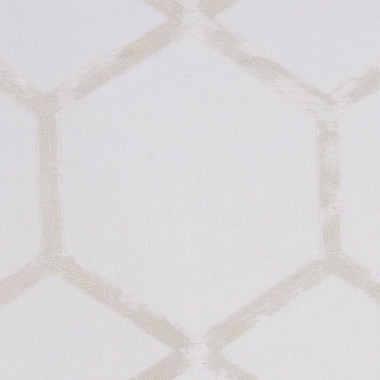 Clarke and Clarke Metalli Forma F1469-04 features large scale geometric patterns on a textured sheer. Highlighted with foil and metallic accents.
