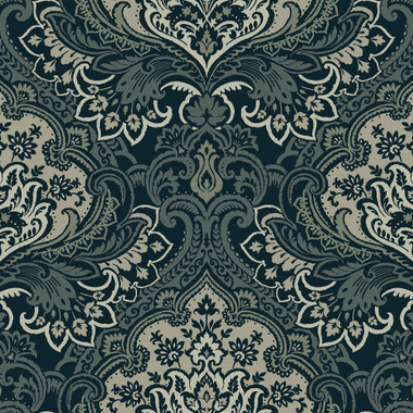 This expressive damask design imitates the lustre and opulence of the woven cloth, that since its earliest production in the Middle East has been associated with luxury. Damasks are versatile designs suitable for a wide range of interior styles, though having a classical appearance, they evoke period wealth and style. In terms of appearance the design appears to sit 'on top of' the base layer of paper, adding a sense of depth and interest shown here in Black.