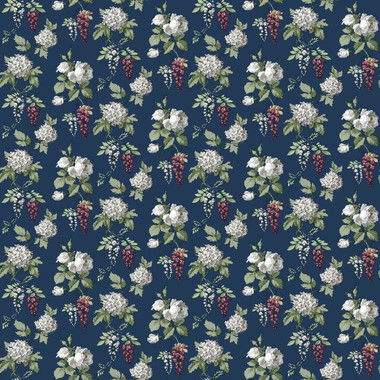A beautiful mini floral motif inspired by traditional country gardens, this small floral print is guaranteed to bring a touch of elegance to any room. On a dark blue backdrop this wallpaper features fresh green and white flora with a hint of red. This strong and durable vinyl wallpaper is great for high traffic areas.
